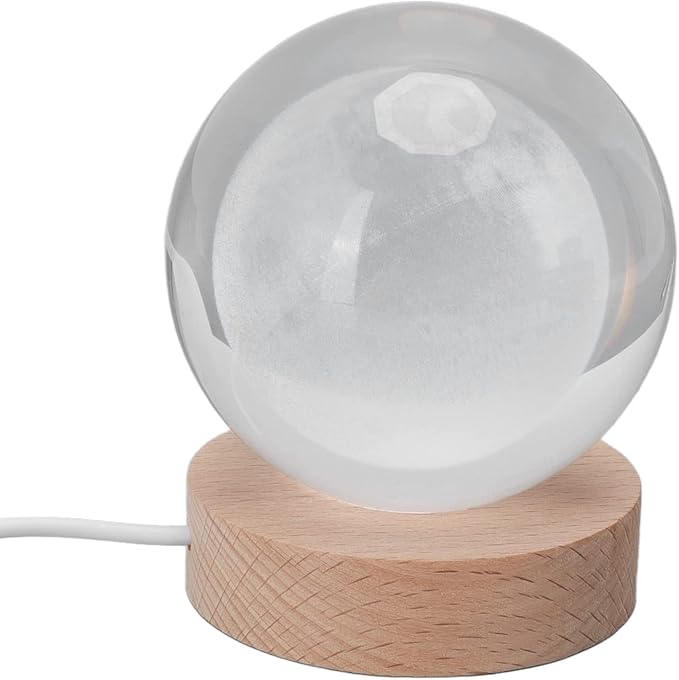 🌌 Unique and Realistic Design: The interior of the transparent crystal ball reveals fascinating 3D patterns, evoking the beauty of the cosmos, moon, galaxy, and more, while the unpainted solid wood base adds a natural and elegant touch.